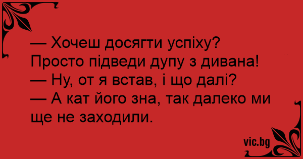 — Хочеш досягти успіху? Просто підведи дупу з дивана!