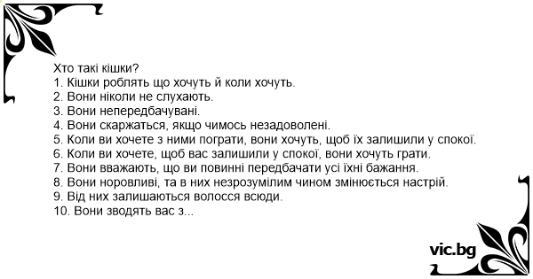 Висновок: кішки - це маленькі жінки у шубах.