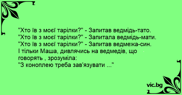 "Хто їв з моєї тарілки?" - Запитала ведмідь-мати.