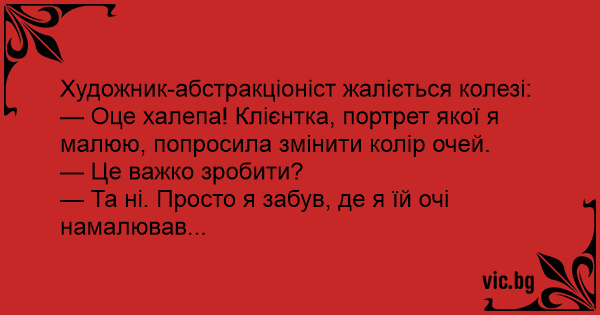 — Оце халепа! Клієнтка, портрет якої я малюю, попросила змінити колір очей.