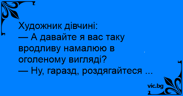 — А давайте я вас таку вродливу намалюю в оголеному вигляді?