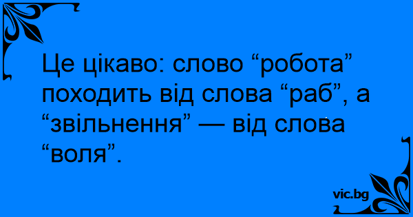 Це цікаво: слово “робота” походить від слова “раб”, а “звільнення” — від слова “воля”.