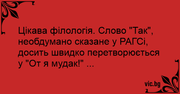 Цікава філологія. Слово "Так", необдумано сказане у РАГСі, досить швидко перетворюється у "От я mудak!" ...