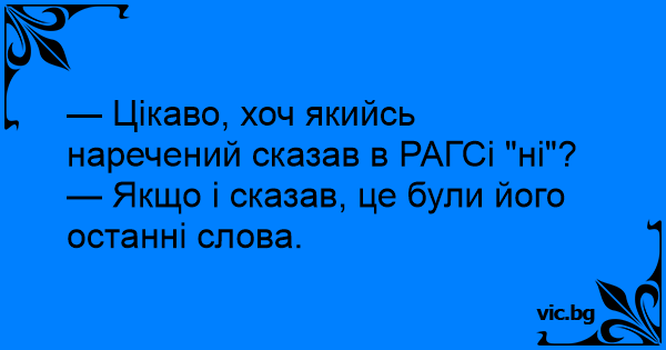 — Цікаво, хоч якийсь наречений сказав в РАГСі "ні"?