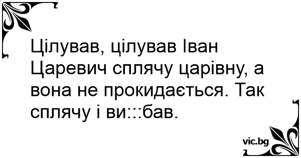 Цілував, цілував Іван Царевич сплячу царівну, а вона не прокидається. Так сплячу і ви:::бав.