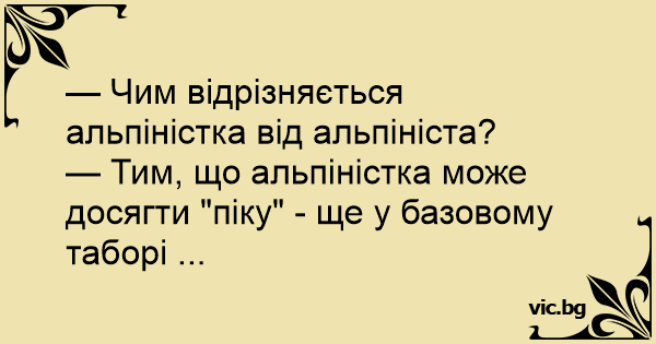 — Чим відрізняється альпіністка від альпініста?
