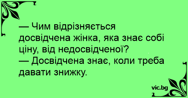 — Чим відрізняється досвідчена жінка, яка знає собі ціну, від недосвідченої?