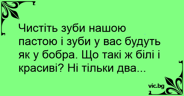 Чистіть зуби нашою пастою і зуби у вас будуть як у бобра. Що такі ж білі і красиві? Ні тільки два...