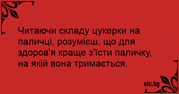 Читаючи складу цукерки на паличці, розумієш, що для здоров'я краще з'їсти паличку, на якій вона тримається.