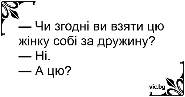 — Чи згодні ви взяти цю жінку собі за дружину?