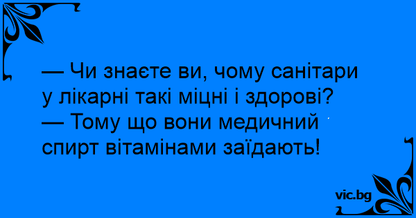 — Чи знаєте ви, чому санітари у лікарні такі міцні і здорові?