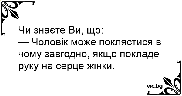 — Чоловік може поклястися в чому завгодно, якщо покладе руку на серце жінки.