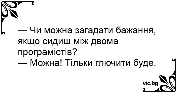 — Чи можна загадати бажання, якщо сидиш між двома програмістів?