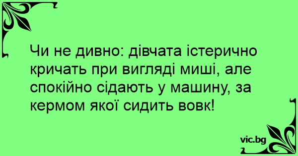 Чи не дивно: дівчата істерично кричать при вигляді миші, але спокійно сідають у машину, за кермом якої сидить вовк!
