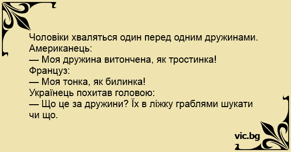 — Що це за дружини? Їх в ліжку граблями шукати чи що.