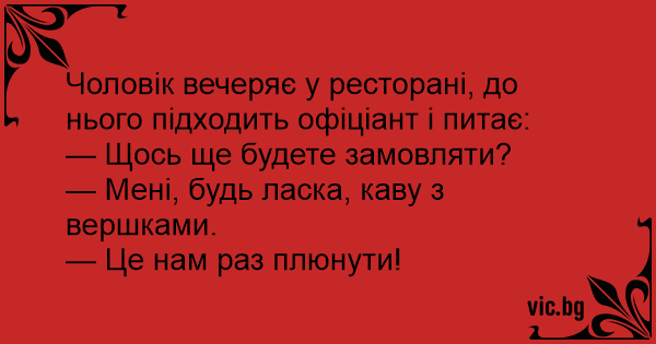 Чоловік вечеряє у ресторані, до нього підходить офіціант і питає: