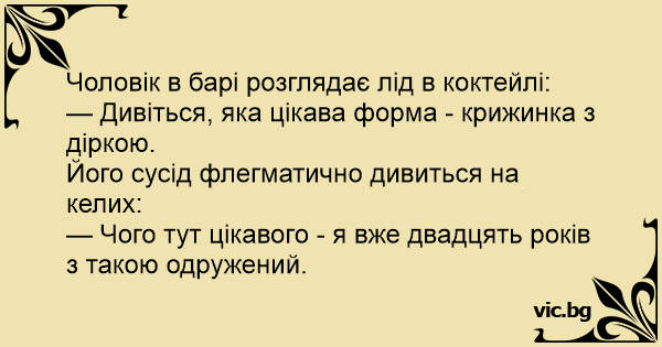 — Чого тут цікавого - я вже двадцять років з такою одружений.