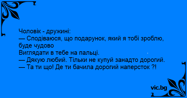 — Та ти що! Де ти бачила дорогий наперсток ?!