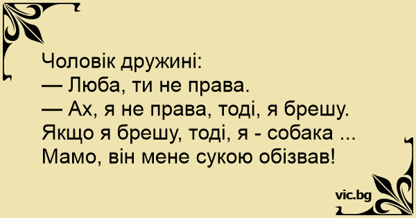 — Ах, я не права, тоді, я брешу. Якщо я брешу, тоді, я - собака ... Мамо, він мене сукою обізвав!