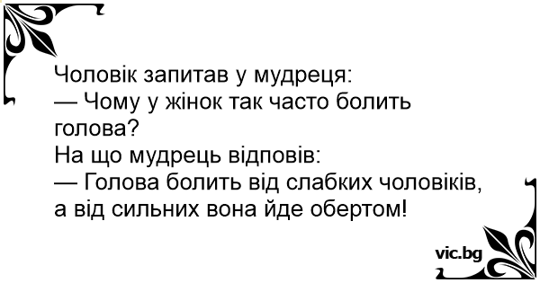 — Голова болить від слабких чоловіків, а від сильних вона йде обертом!