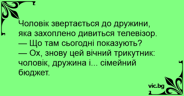 — Ох, знову цей вічний трикутник: чоловік, дружина і... сімейний бюджет.