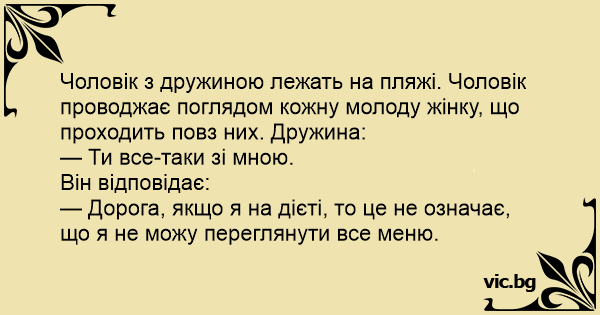 — Дорога, якщо я на дієті, то це не означає, що я не можу переглянути все меню.
