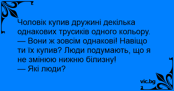 — Вони ж зовсім однакові! Навіщо ти їх купив? Люди подумають, що я не змінюю нижню білизну!