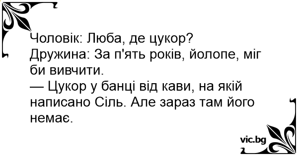 Дружина: За п'ять років, йолопе, міг би вивчити.