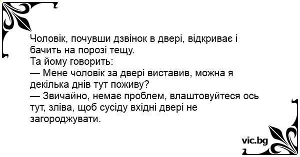 — Мене чоловік за двері виставив, можна я декілька днів тут поживу?