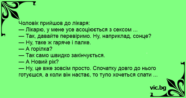— Лікарю, у мене усе асоціюється з сексом ...