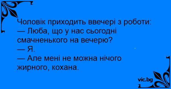 — Люба, що у нас сьогодні смачненького на вечерю?