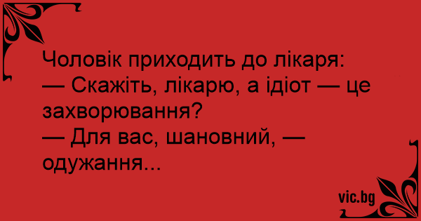 — Скажіть, лікарю, а ідіот — це захворювання?