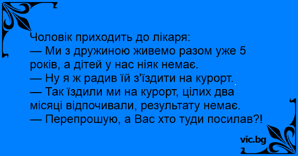 — Ми з дружиною живемо разом уже 5 років, а дітей у нас ніяк немає.