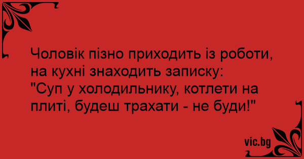 "Суп у холодильнику, котлети на плиті, будеш трахати - не буди!"