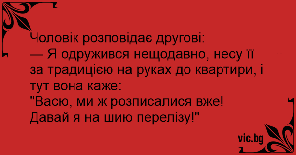 "Васю, ми ж розписалися вже! Давай я на шию перелізу!"