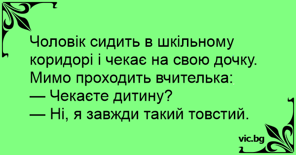 Чоловік сидить в шкільному коридорі і чекає на свою дочку. Мимо проходить вчителька: