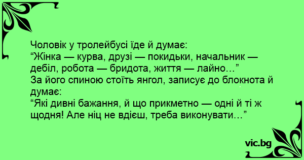 Чоловік у тролейбусі їде й думає:
