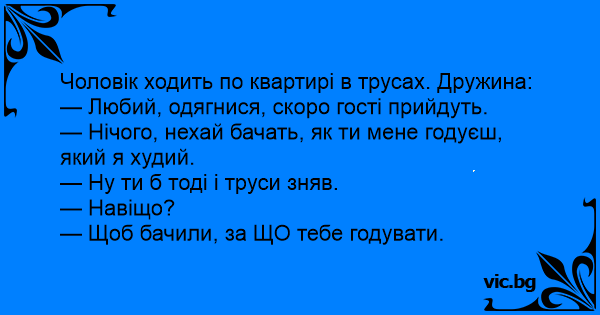 — Нічого, нехай бачать, як ти мене годуєш, який я худий.