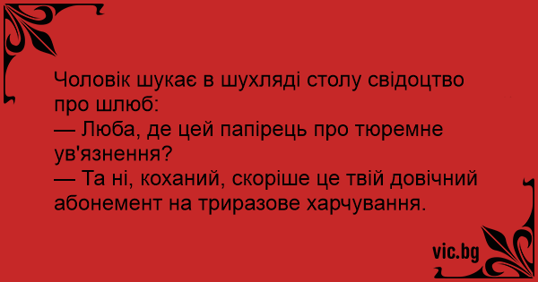 — Та ні, коханий, скоріше це твій довічний абонемент на триразове харчування.