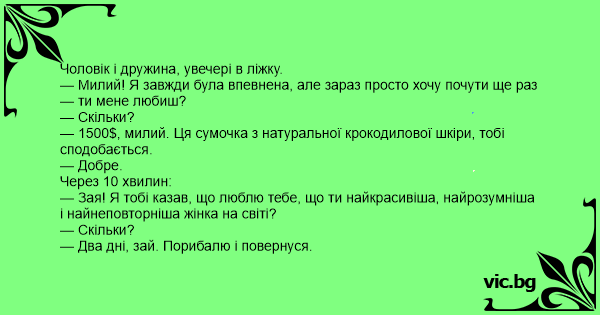 — Милий! Я завжди була впевнена, але зараз просто хочу почути ще раз — ти мене любиш?