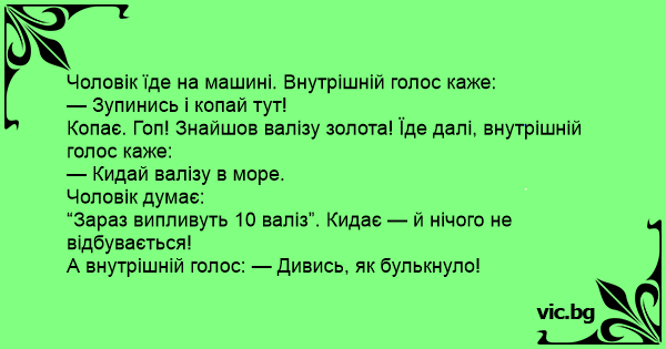 А внутрішній голос: — Дивись, як булькнуло!