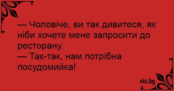 — Чоловіче, ви так дивитеся, як ніби хочете мене запросити до ресторану.