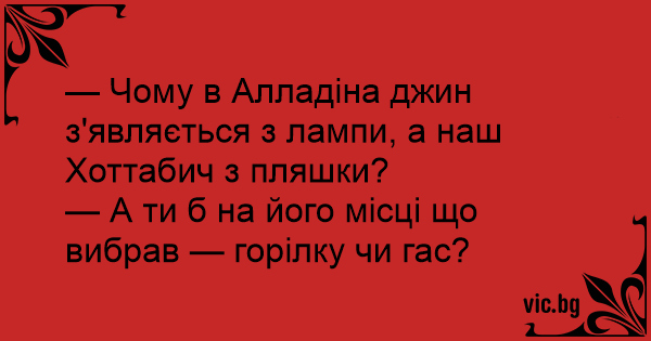 — Чому в Алладіна джин з'являється з лампи, а наш Хоттабич з пляшки?