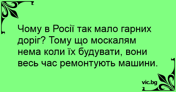 Чому в Росії так мало гарних доріг? Тому що москалям нема коли їх будувати, вони весь час ремонтують машини.