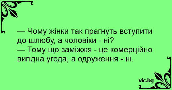 — Чому жінки так прагнуть вступити до шлюбу, а чоловіки - ні?