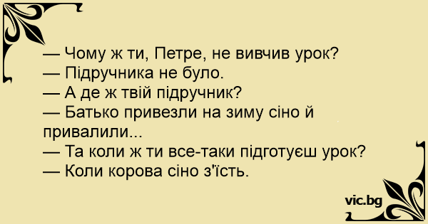— Чому ж ти, Петре, не вивчив урок?