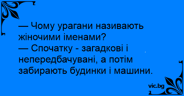 Women and Bad Weather Unterschied zwischen Frauen und Taifunen Γιατί όλοι οι τυφώνες έχουν θηλυκό όνομα; - Защо ураганите ги наричат все с ​​женски имена? - Знаете ли какво е общото между жената и торнадото ? Was haben Frauen und Tornados gemeinsam: ¿Por qué los huracanes en su mayoría tienen nombres de mujeres? И жените и торнадото започват с духане а после ти отнасят къщата ... Каква е приликата между блондинката и торнадото? Question: Why are hurricanes sometimes named after women? Quelle est le point commun entre une femme et un ouragan? Was haben eine Frau und ein Hurricane gemeinsam? Beide kommen warm und feucht, und wenn sie verschwinden nehmen sie Haus und Auto mit. Pourquoi les tornades ont toujours des noms de filles? Parce qu'elles arrivent chaudes et humides et repartent avec ta maison et ta voiture. Τι κοινό έχει το τσουνάμι με το μουνί? Έρχονται και τα δύο ζεστά και υγρά και φεύγουν με αμάξι και σπίτι. Pourquoi les ouragans ont-ils tous des noms de femmes ? Car quand ça arrive, c'est chaud et humide, et quand ça repart, ça emporte ta voiture et ta maison ! Q: How are women and tornadoes alike? A: They both moan like hell when they come, and take the house when they go. Was haben Frauen und Orkane gemeinsam? Sie sind heiß und feucht, wenn sie kommen. Und wenn sie gehen, nehmen sie Häuser und Autos mit. Q: How are women and a hurricane alike? A: When they arrive they're both wet and wild, when they leave, they take your house and your car. ¿Por qué los huracanes tienen nombre de mujer? Porque cuando llegan son salvajes y mojados, y cuando se van, se llevan la casa y el auto. Varför döper man tornados efter kvinnor? De dyker inte upp så ofta, men när de gör det för de ett jäkla oväsen och när de går så tar de halva huset med sig. Was haben Frauen und Orkane gemeinsam ?? Es fängt mit einem Blasen an, und dann ist das Haus weg. Hvorfor får orkaner altid pige navne? – Når de kommer er de våde og vilde og når de går tager de hus og bil med sig… maestra porque a los huracanes les ponen nombre de mujer? porque cuando se enojan se llevan todo casa carro, los muebles los corotos, los muchachos y todo lo que puedan Hva er likheten mellom jenter og orkaner? - Våte og ville i begynnelsen men tar med seg hus og bil når de drar.. Opkaldt efter kvinder Hvorfor er alle orkaner opkaldt efter kvinder? – Fordi de er våde og vilde når de kommer, og så tager de både hus og bil med sig når de går! Dlaczego kobieta podobna jest do huraganu? - Bo wprawdzie najpierw jest ciepła i wilgotna, ale później zabiera ci dom i samochód... Miksi hirmumyrskyille annetaan naisten nimet? - Ne saapuvat villeinä ja märkinä, mutta lähtevät mukanaan talot, autot ja irtain omaisuus. Perché gli uragani hanno nomi femminili? Perché quando arrivano sono bagnati e scatenati, e quando se ne vanno si prendono la casa e la macchina. Waarom hebben orkanen meestal vrouwelijke namen? - Ze komen meestal nat en krachtig aanzetten, houden je een tijdje bezig en zijn uiteindelijk met je huis en je auto weg !! ¿ En qué se parecen las mujeres a los huracanes? En que llegan fuertes y salvajes y se van con tu carro y tu casa. - Varför ger man tropiska orkaner kvinnonamn? - Det är för att de är vilda och våta när de kommer. Och när de försvinner tar de med sig bilen och huset... Varför är alla orkaner uppkallade efter kvinnor? - Eftersom de båda är våta och vilda när de kommer och så tar de både hus och bil med sig när de går! Sabe porque que mulher é igual a tsunami? R: Porque quando vem vem cheia de onda, e quando vai leva casa, carro, dinheiro... Perchè i più grandi tornado hanno il nome di donna? Perchè quando arrivano sono caldi e umidi... e quando se ne vanno, si portano via tutto, anche la casa e la macchina! Kāpēc viesuļvētras sauc sieviešu vārdos? - Iesākumā tās ir noslēpumainas un neprognozējamas, pēc tam paņem mājas un mašīnas
