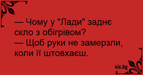 Γιατί το πίσω τζάμι του Yugo είναι θερμαινόμενο; Waarom heeft een Lada achterruitverwarming? Om je handen warm te houden als je moet duwen. Miksi Skodassa on takalasin lämmitys? Jotta perheen emännän kädet eivät talvella paleltuisi, kun hän työntää sitä käyntiin. Защо BMW-тата имат отопление на задното стъкло? За да не ви изстиват ръцете, когато бутате зимата – Vet du hvorfor Ladaen har varme i bakrutene? – Nei. – Slik at det ikke skal bli så kaldt å skubbe om vinteren. Pourquoi la lunette arrière des Renault est-elle chauffée ? - Pour éviter que les mains gèlent quand on la pousse. Miksi Ladassa on lämmitettävä takalasi? – Talvella eivät kädet jäädy kun työnnät sitä. Anledningen till att Toyota Yaris har eluppvärmd bakruta är att du inte skall behöva frysa om händerna när du skall skjuta den på sidan vägen vintertid. Proč mají Škodovky zadní sklo vytápěné? . . Aby nezábly ruce, když tlačíte.