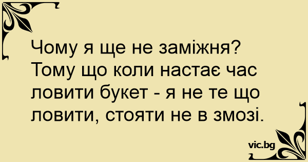 Чому я ще не заміжня? Тому що коли настає час ловити букет - я не те що ловити, стояти не в змозі.