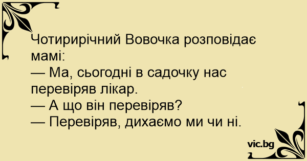 — Ма, сьогодні в садочку нас перевіряв лікар.